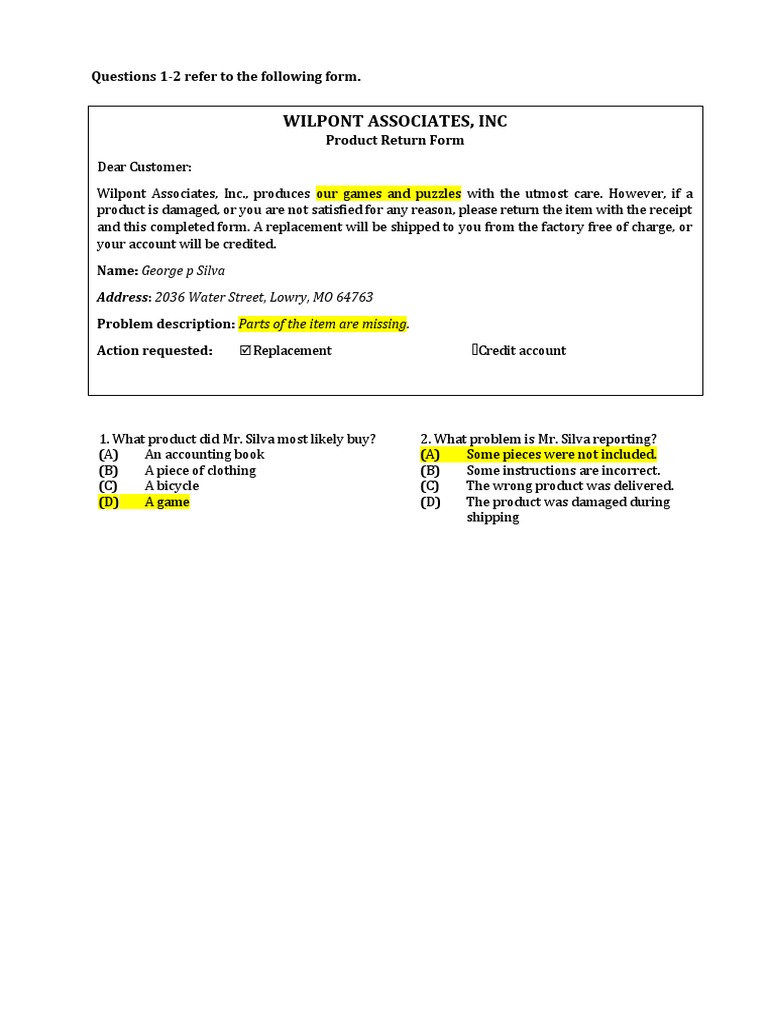 1. What product did Mr. Silva most likely buy? 2. What problem is Mr. Silva reporting?