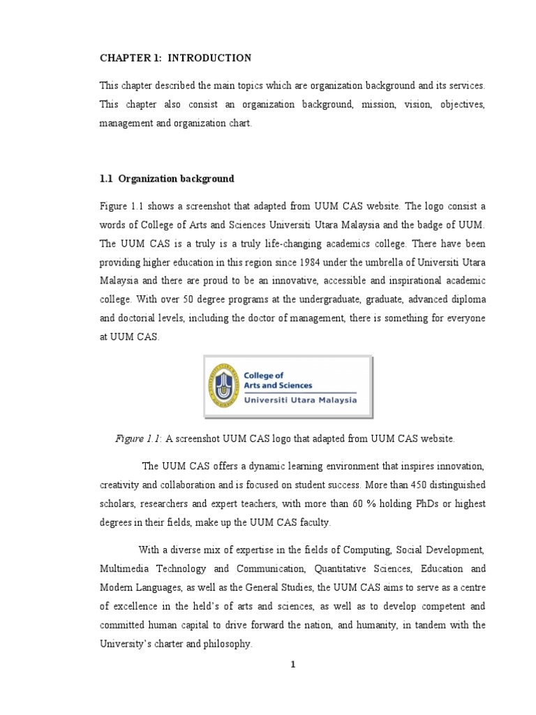 Figure 1.1 shows a screenshot that adapted from UUM CAS website. The logo consist a