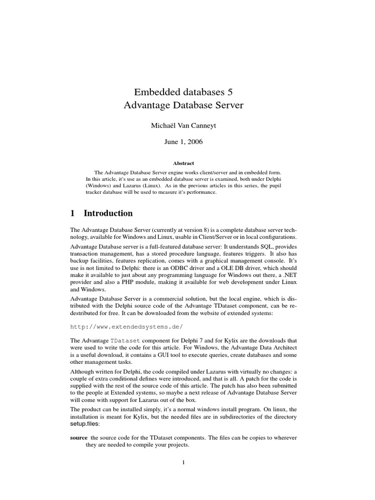 tributed with the Delphi source code of the Advantage TDataset component, can be re-