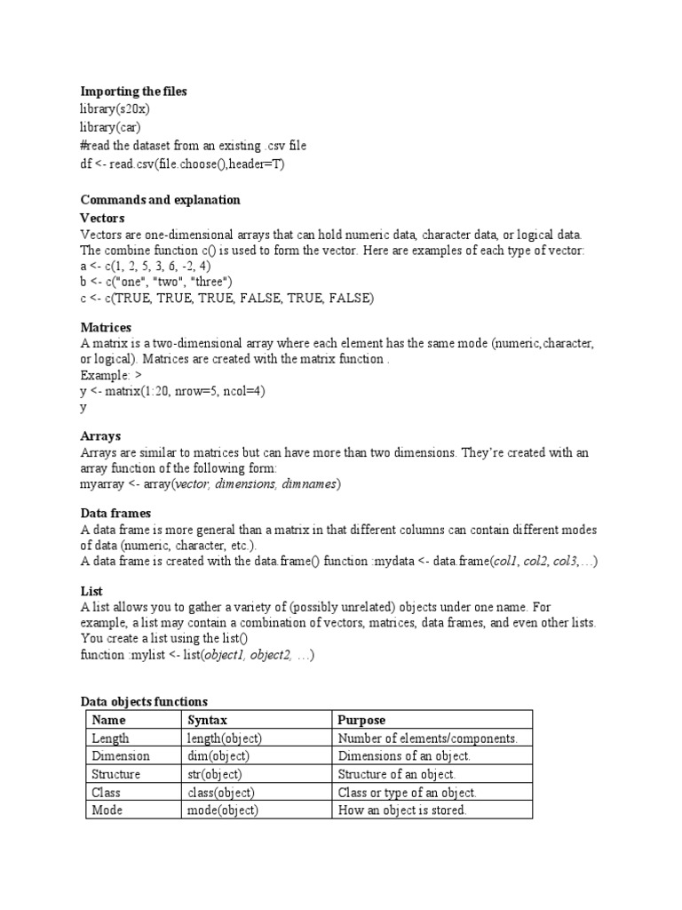 Row Bind rbind(object, object, ...) Combines objects as rows.