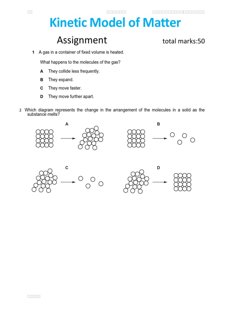 2 Which diagram represents the change in the arrangement of the molecules in a solid as the