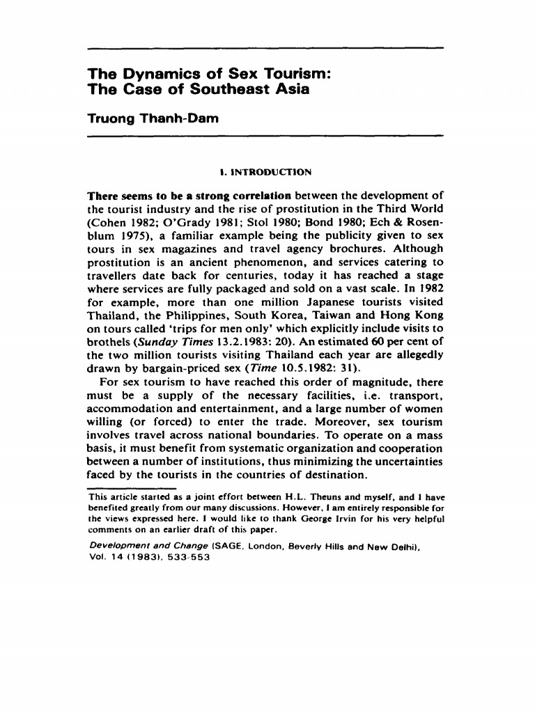 Lenz, I . (1978):‘Prostitutional Tourism in South East Asia’ (Berlin, Ostasiatisches