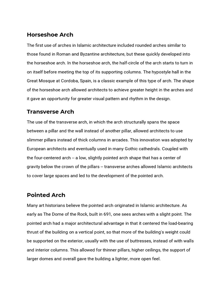 the horseshoe arch. In the horseshoe arch, the half-circle of the arch starts to turn in
