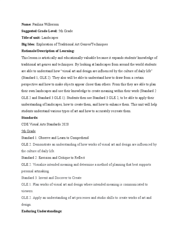 traditional art genres and techniques. By looking at landscapes from around the world students