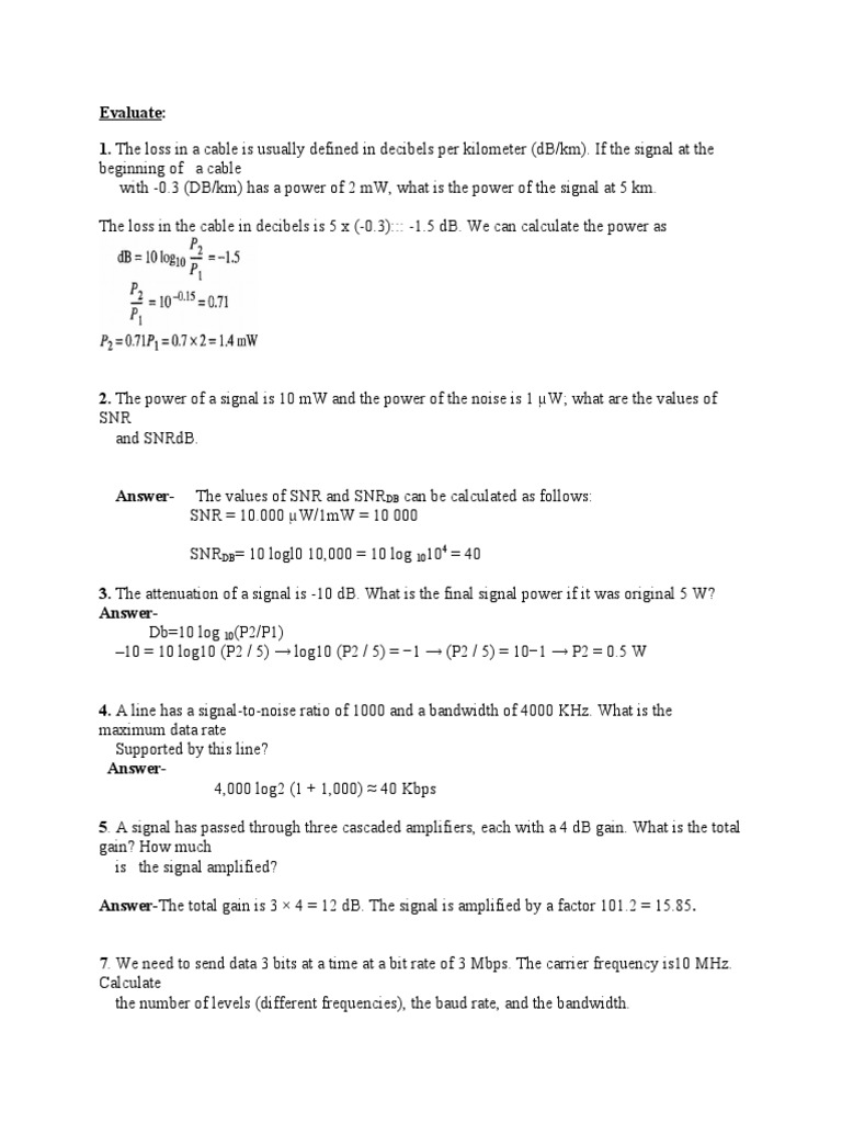 2. The power of a signal is 10 mW and the power of the noise is 1 µW; what are the values of