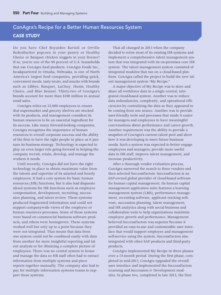 conagra.com, accessed February 21, 2016; www.successfactors. 13-16 What types of systems-building methods and