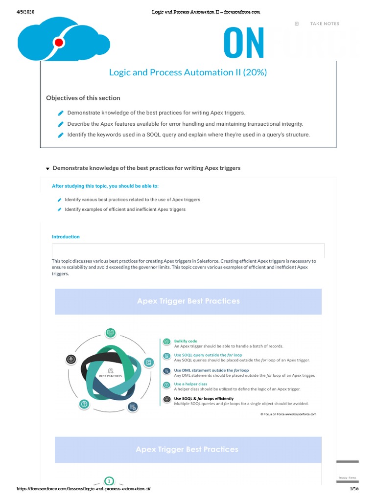 The Apex Trigger Best Practices section is here! It looks great! Thanks FocusOnForce!