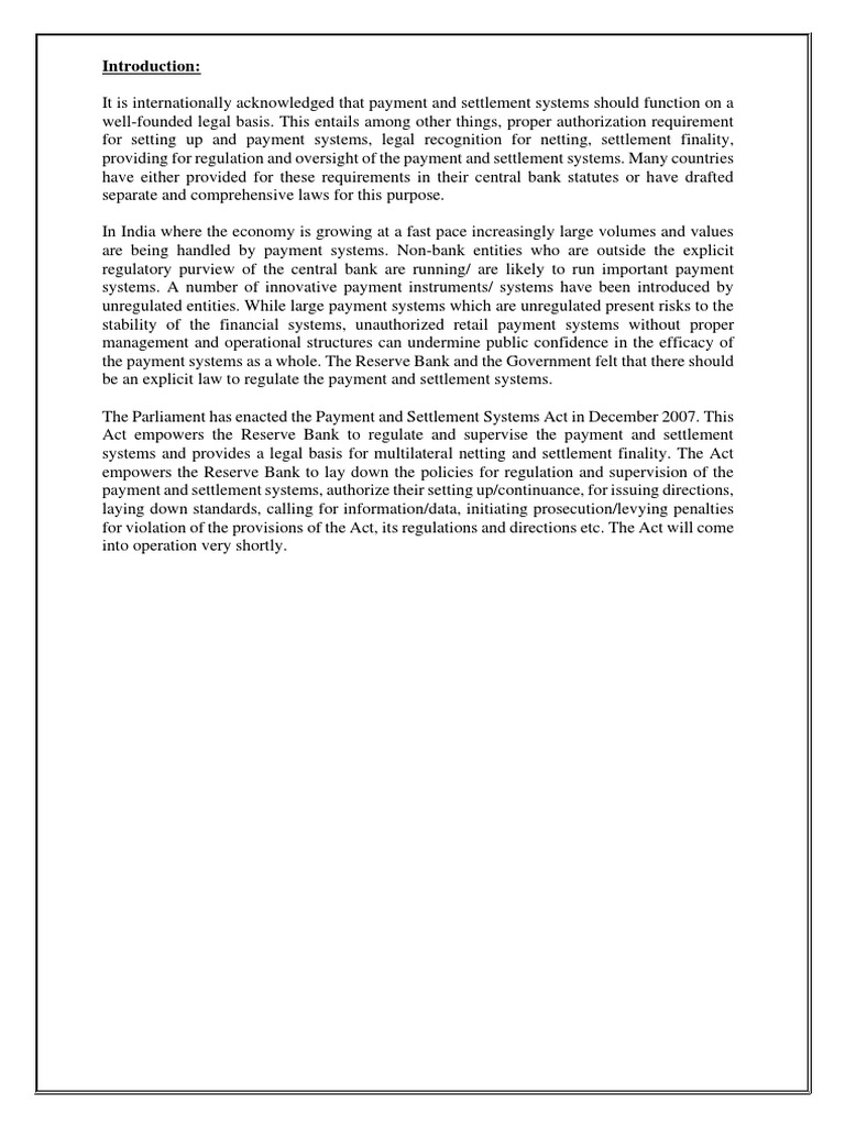 installment frameworks all in all. The Reserve Bank and the Government felt that there ought