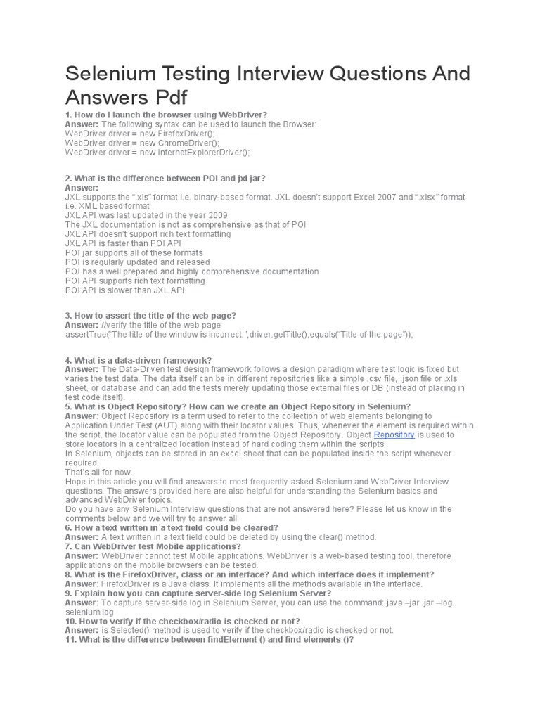 questions. The answers provided here are also helpful for understanding the Selenium basics and
