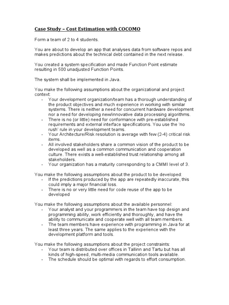Study – Cost Estimation with COCOMO