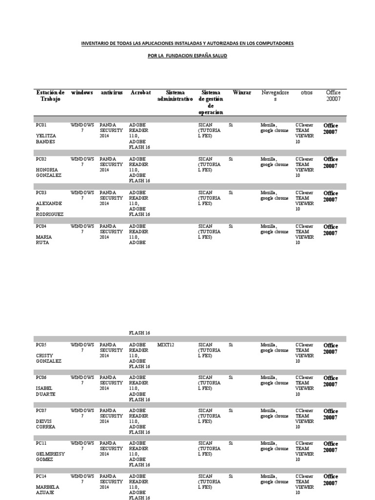 Estación de windows antivirus Acrobat Sistema Sistema Winrar Navegadore otros Office