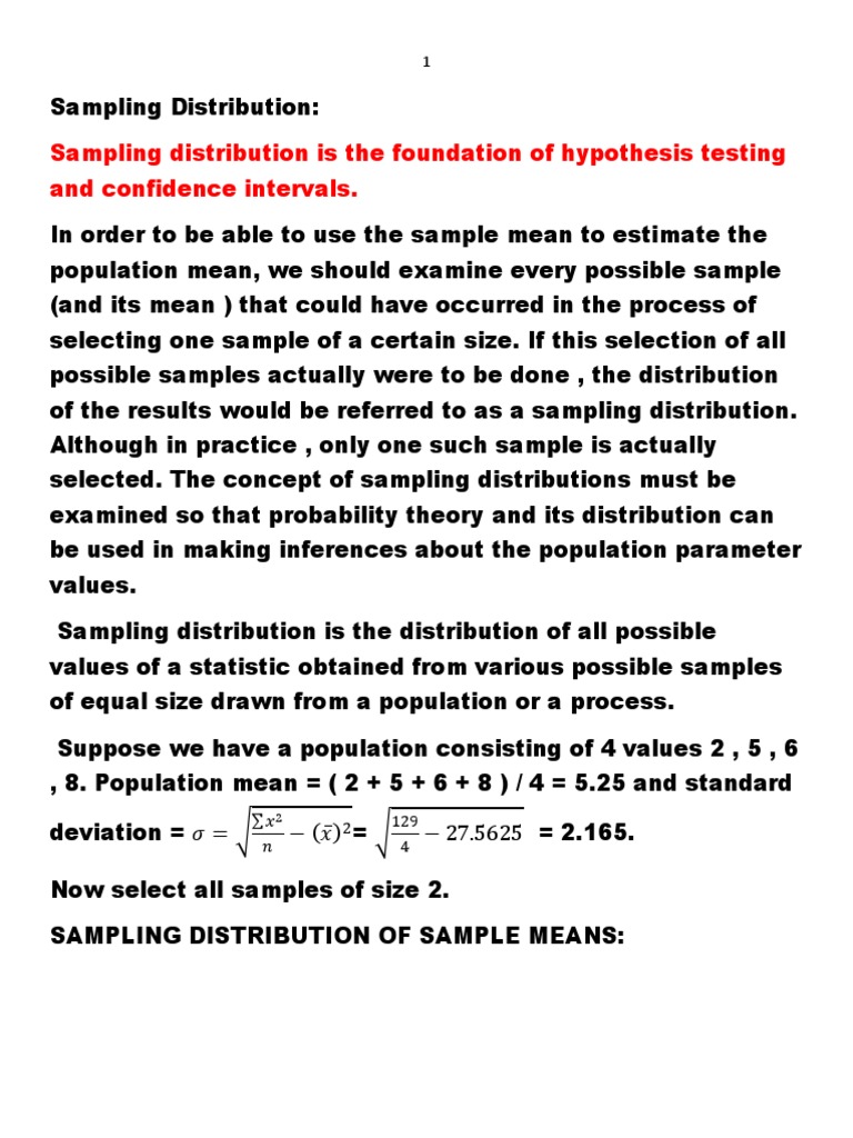 { SAMPLING DISTRIBUTION OF STATISTIC ; CENTRAL LIMIT THEOREM :