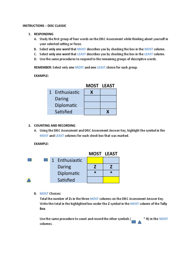 A. Using the DISC Assessment and DISC Assessment Answer Key, highlight the symbol in the