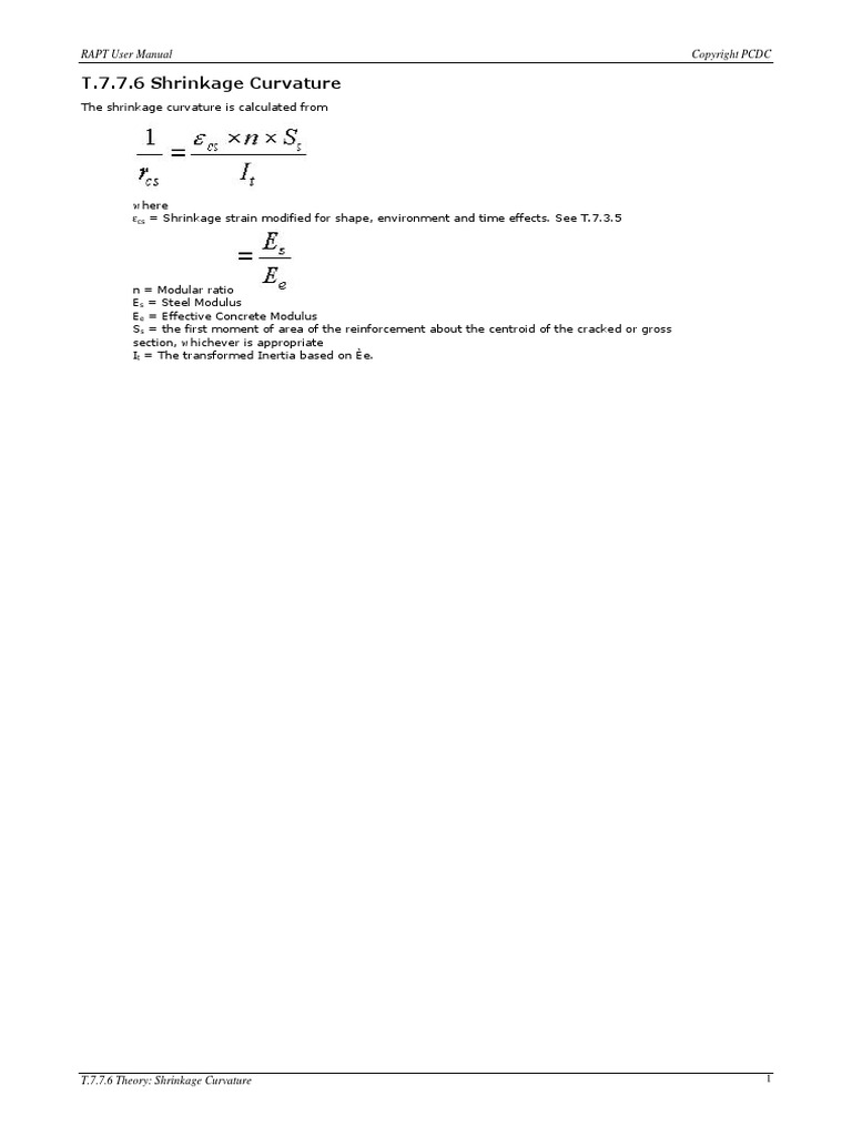 reached. For all other codes, RAPT uses the curvatures based on gross section properties (ie uncracked) until the