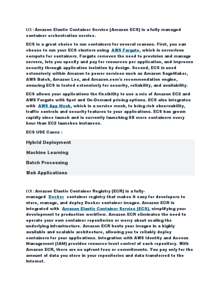 ECS : Amazon Elastic Container Service (Amazon ECS) is a fully managed