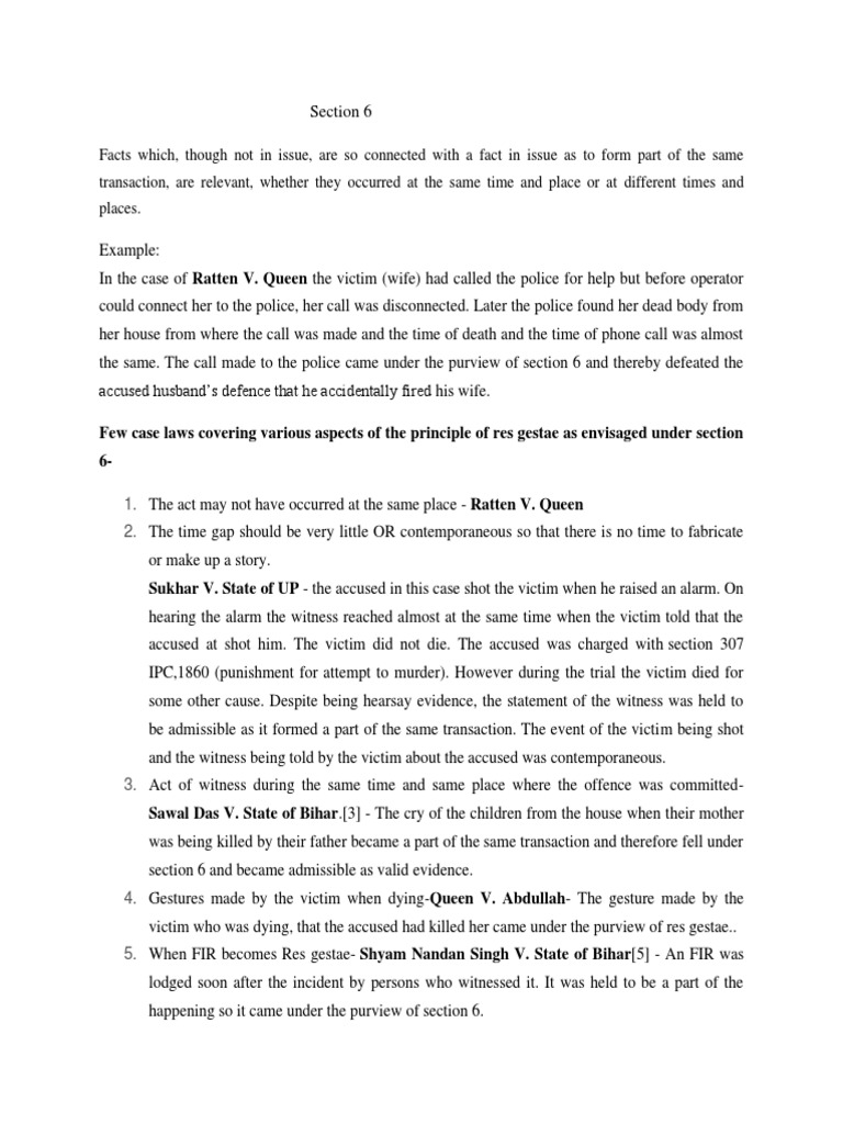 Res gestae is the basic principle contained in Section 6. It is latin term which literally means