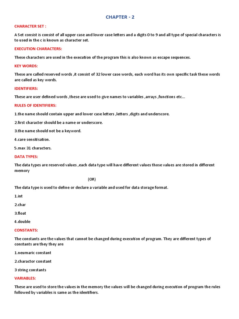 The constants are the values that cannot be changed during execution of program. They are different types of