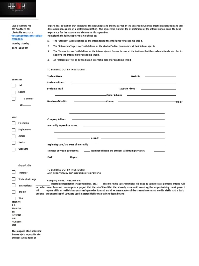 1. The “Student” will be defined as the intern taking the internship for academic credit.