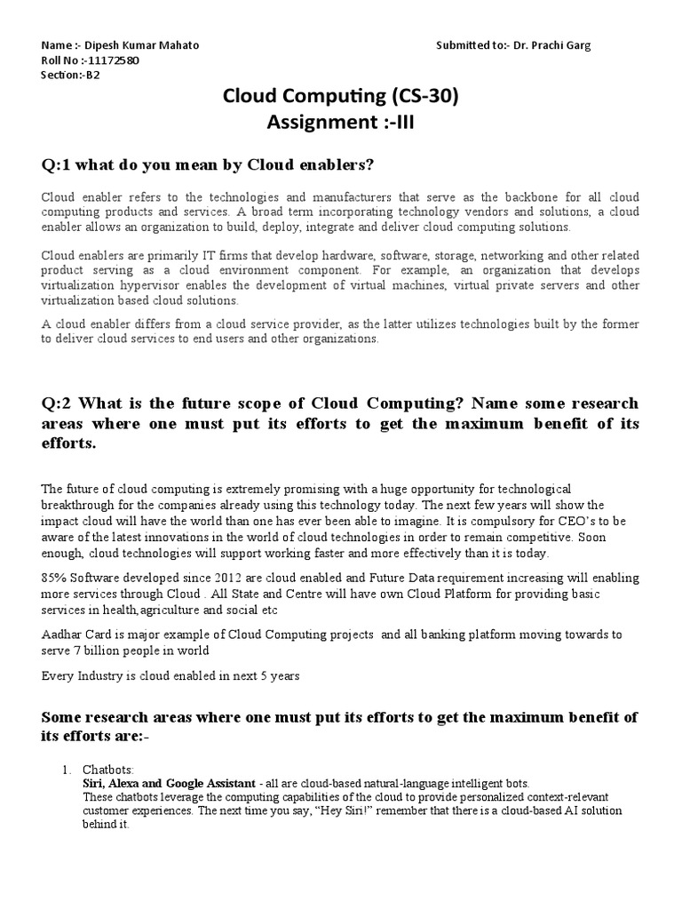 Q:2 What is the future scope of Cloud Computing? Name some research