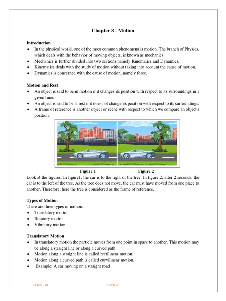 • An object is said to be in motion if it changes its position with respect to its surroundings in a