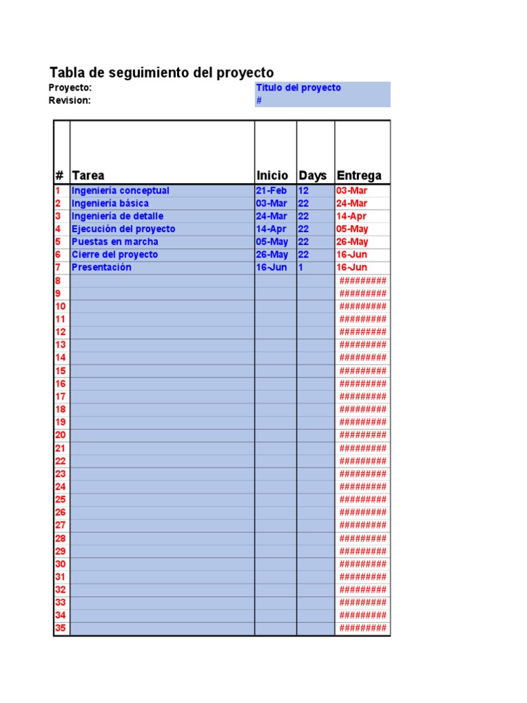 Tabla de seguimiento del proyecto