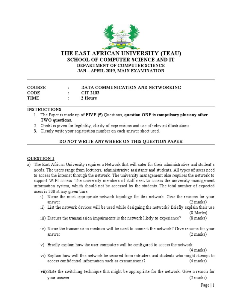 a) The East African University requires a Network that will cater for their administrative and student’s