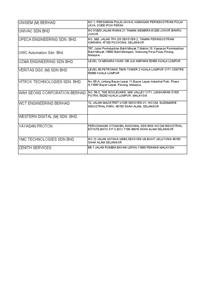 UNISEM (M) BERHAD NO 1, PERSIARAN PULAI JAYA 9, KAWASAN PERINDUSTRIAN PULAI