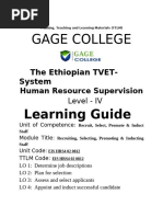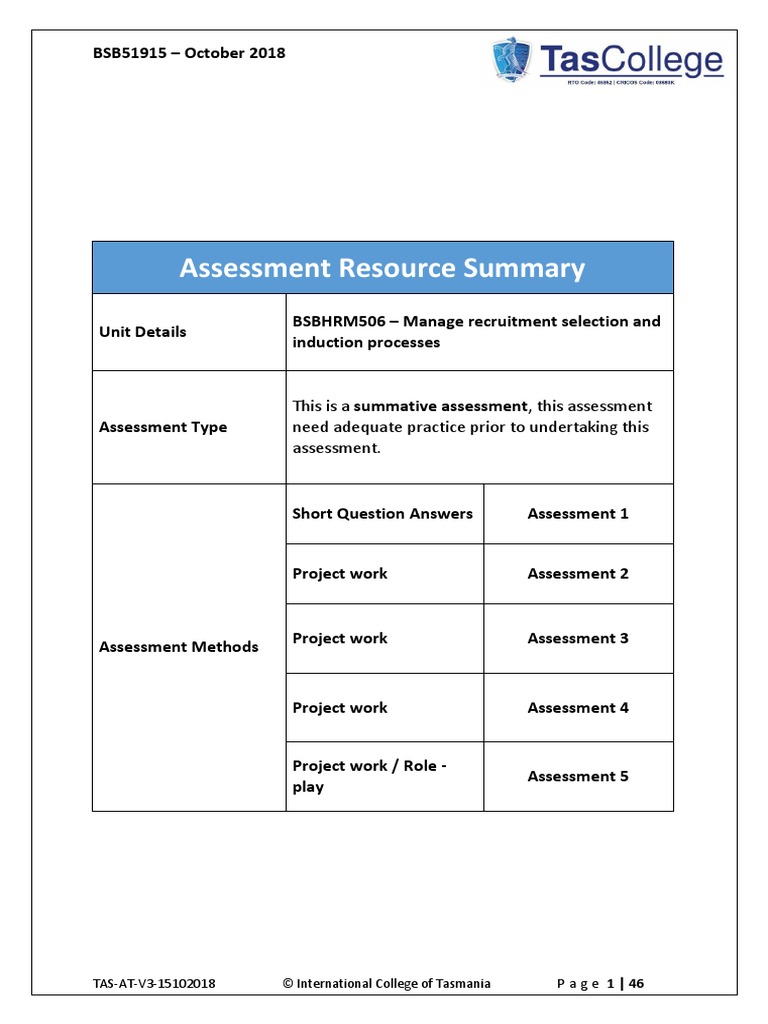 This unit describes the skills and knowledge required to manage all aspects of recruitment selection