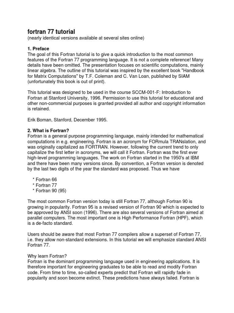 Fortran at Stanford University, 1996. Permission to use this tutorial for educational and
