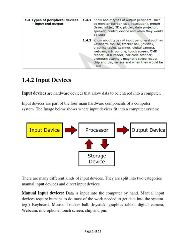Manual Input devices: Data is input into the computer by hand. Manual input