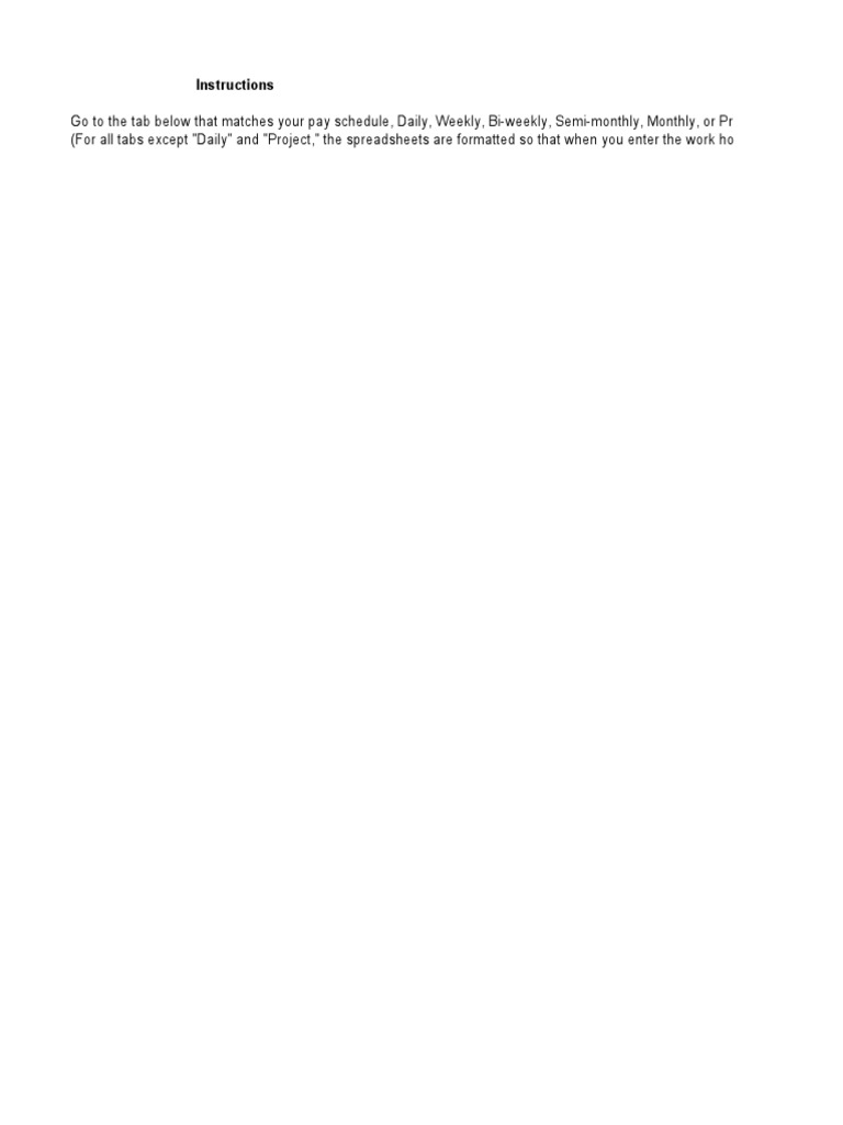 Go to the tab below that matches your pay schedule, Daily, Weekly, Bi-weekly, Semi-monthly, Monthly, or Project (if you're trac