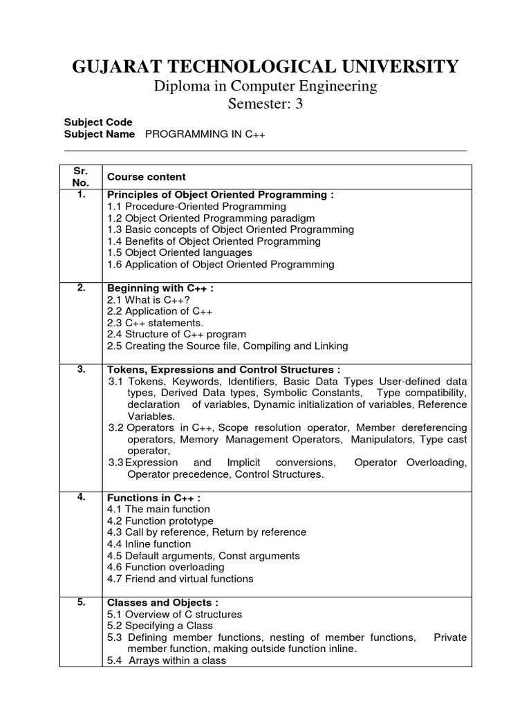 Subject Name PROGRAMMING IN C++