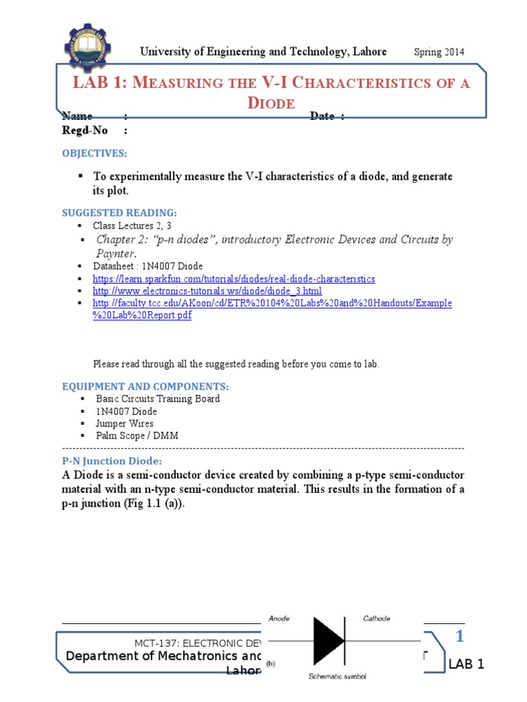 LAB 1: MEASURING THE V-I CHARACTERISTICS OF A