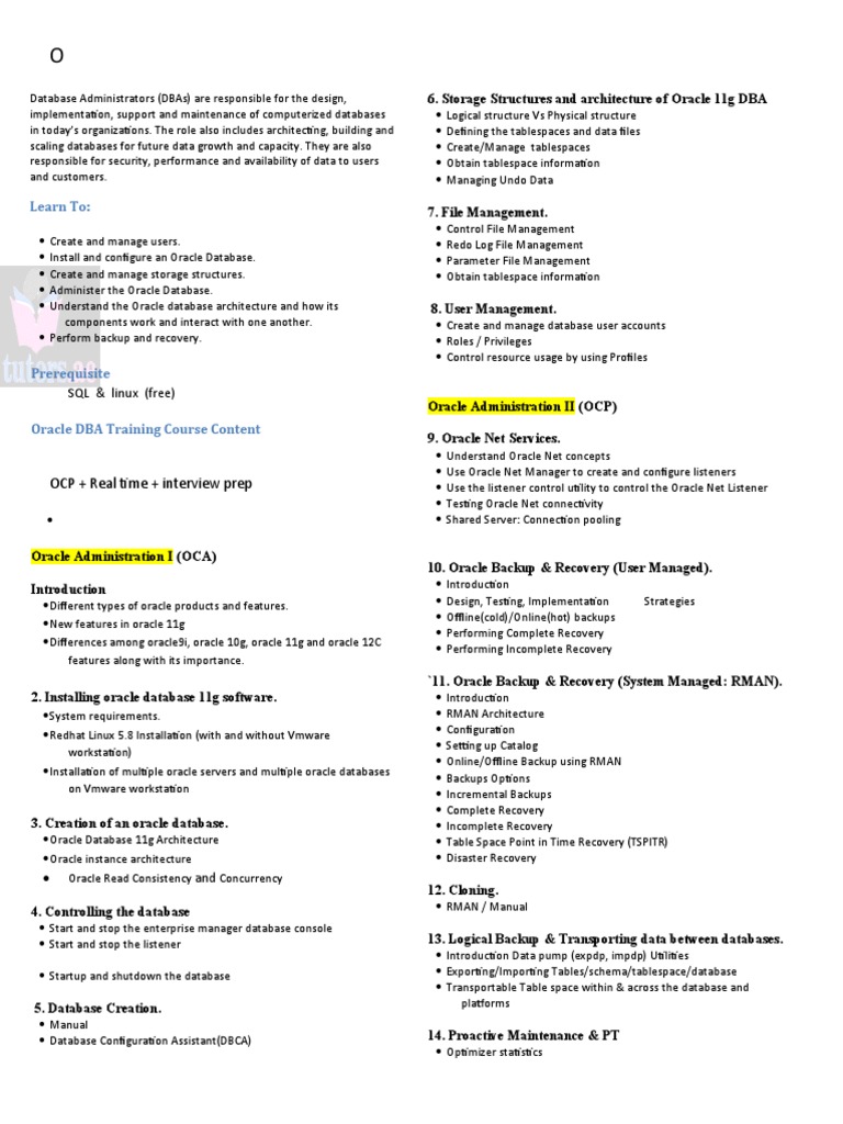 in today’s organizations. The role also includes architecting, building and Defining the tablespaces and data files
