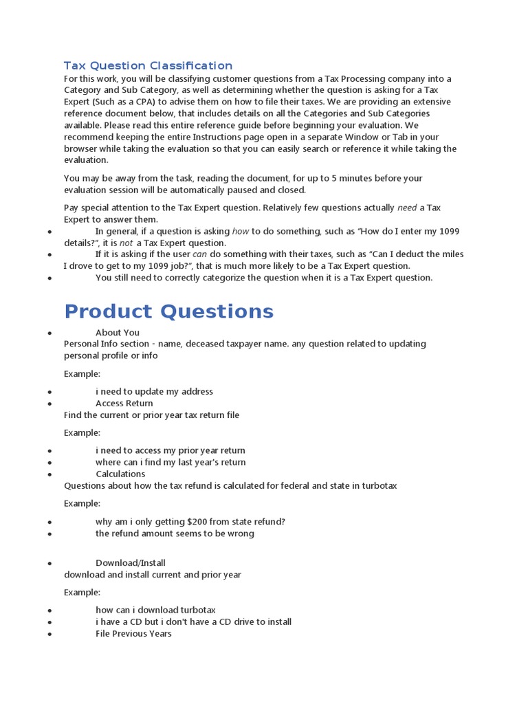 For this work, you will be classifying customer questions from a Tax Processing company into a