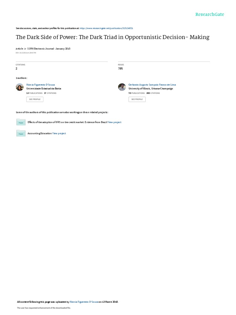 The Dark Side of Power: The Dark Triad in Opportunistic Decision- Making