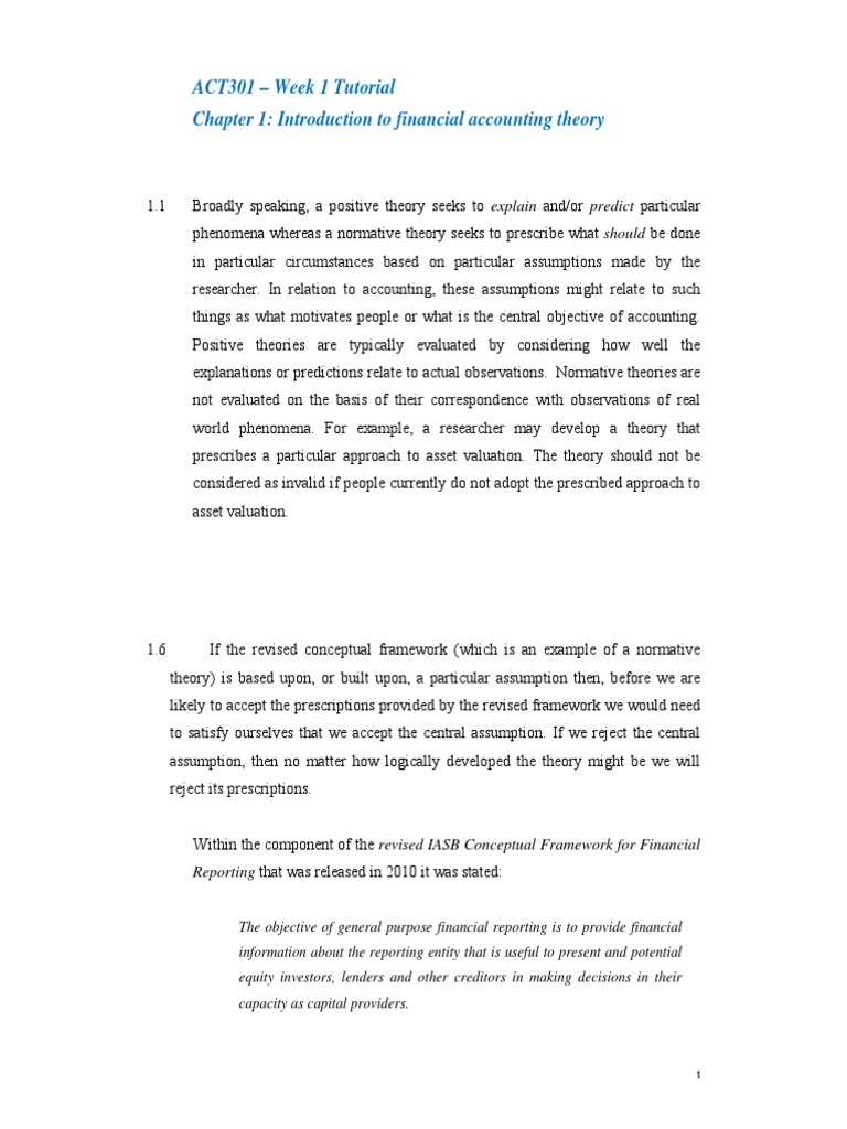 1.1 Broadly speaking, a positive theory seeks to explain and/or predict particular