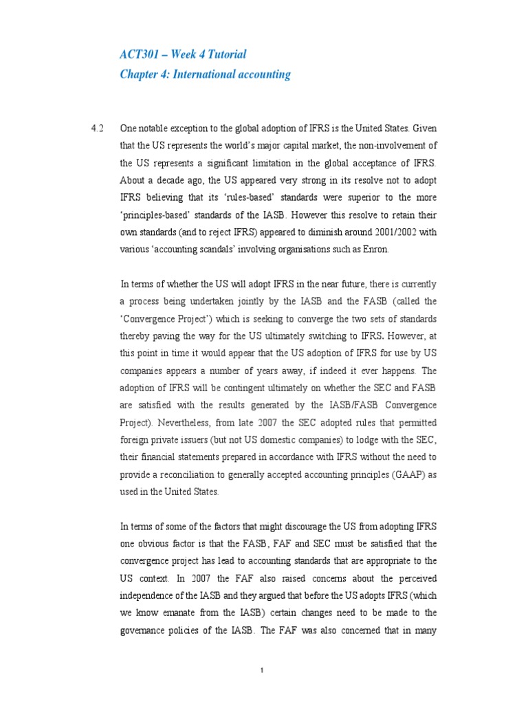 4.2 One notable exception to the global adoption of IFRS is the United States. Given