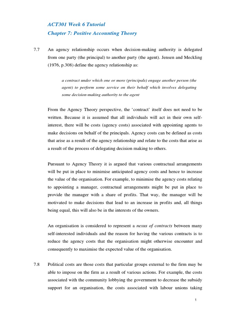 Pursuant to Agency Theory it is argued that various contractual arrangements