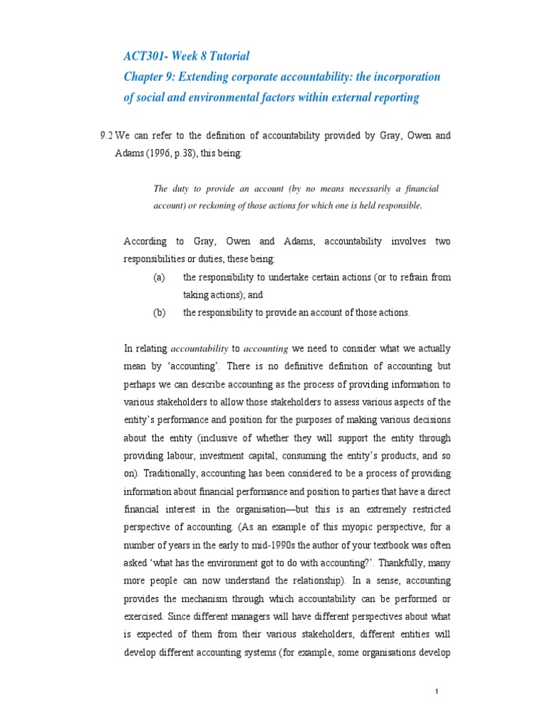 9.2 We can refer to the definition of accountability provided by Gray, Owen and