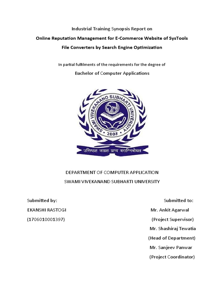 Management” submitted to the Faculty of Science, Keral Verma Subharti