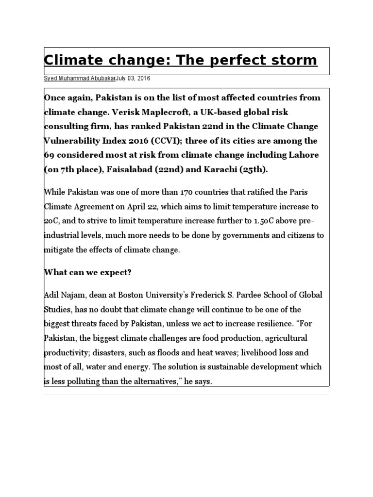 biggest threats faced by Pakistan, unless we act to increase resilience. “For