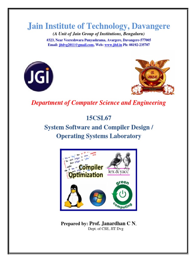 Dept. of CSE System Software & Compiler Design / Operating Systems Lab – 15CSL67