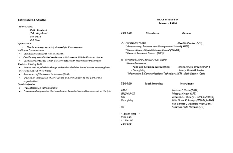 Neatly and appropriately dressed for the occasion. * Accountancy, Business and Management Strand ( ABM)