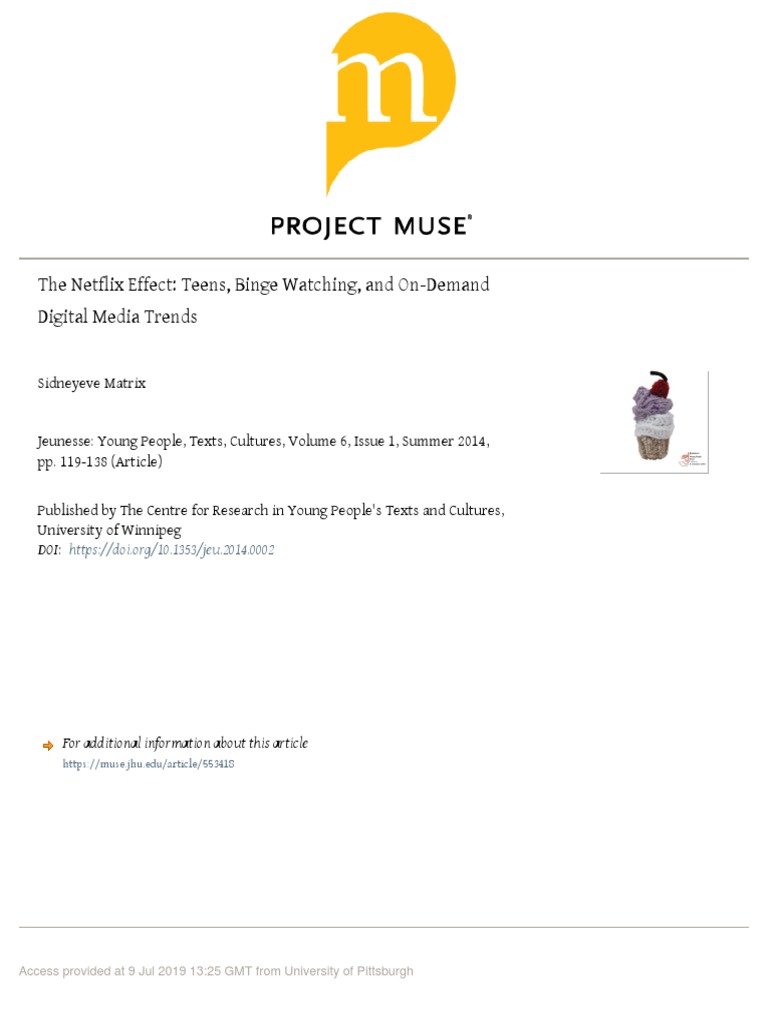 Hermes, Joke. “Citizenship in the Age of the Internet.” European Neal, Dave. “Netflix’s Binge Viewing Behavior Poses Threat to