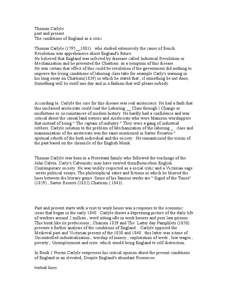 crisis that began in the early 1840. Carlyle shows a depressing picture of the daily life