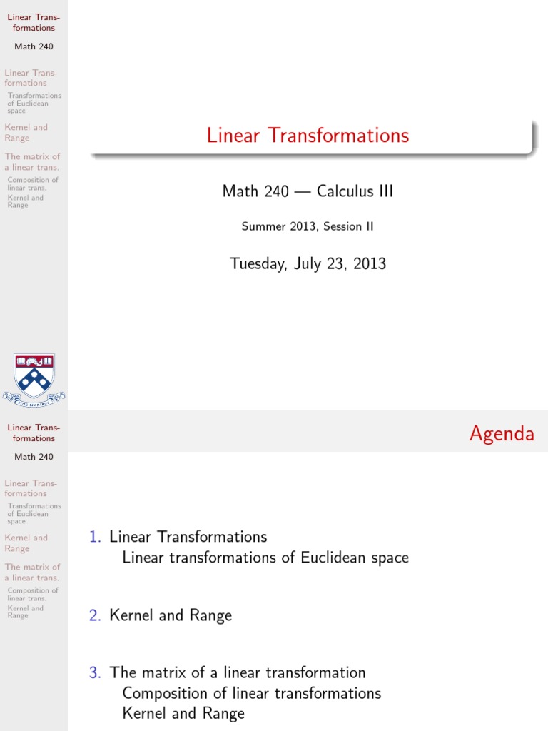 I Ker(T ) = {c1 v1 + · · · + cn vn ∈ V : (c1 , . . . , cn ) ∈
