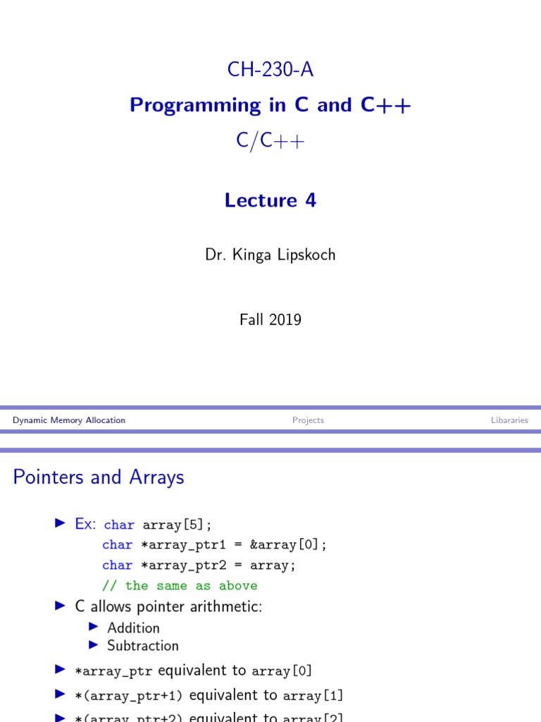 I Unidimensional arrays can be allocated ”on the fly” using the