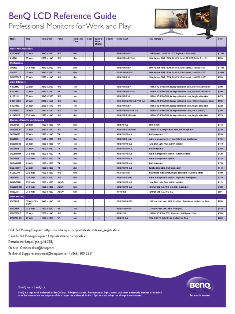 BL2711U 27 inch 3840 x 2160 IPS 4ms HDMI/DP/DVI 100% sRGB/Rec709, factory-calibrated color, height adjustable $479