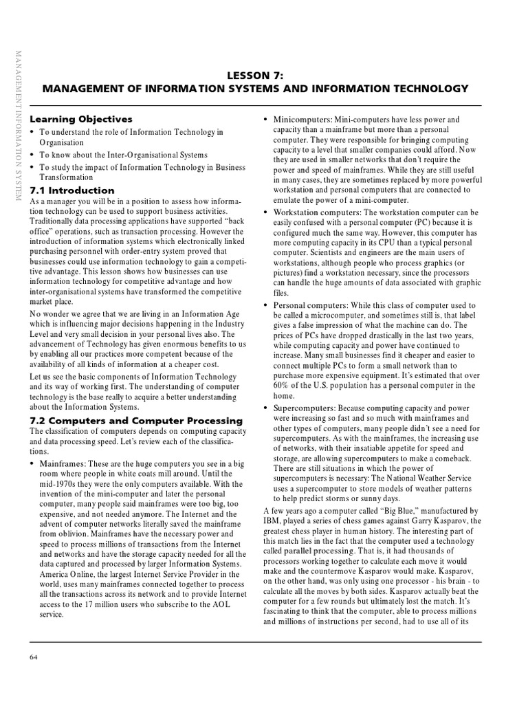 Lesson 7: Management of Informa Tion Systems and Information Technology